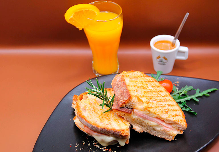 (croque monsieur maison) + Café + Jus d’orange frais (20 cl)